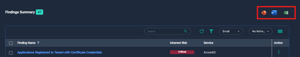 I risultati sono raggruppati nella sezione Findings Summary, organizzati per: