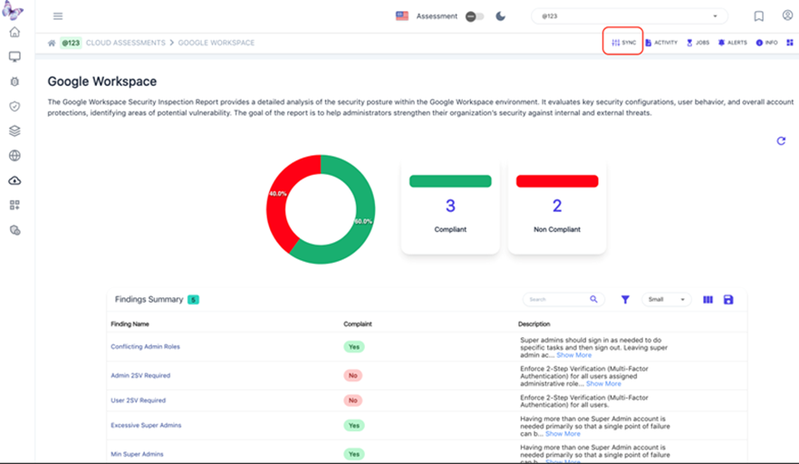 Le informazioni raccolte da questa funzionalità dopo aver eseguito la Sync sono divise in due categorie, Compliant e Non compliant, queste vengono stabilite tramite il confronto con le best practices per la suit Google.