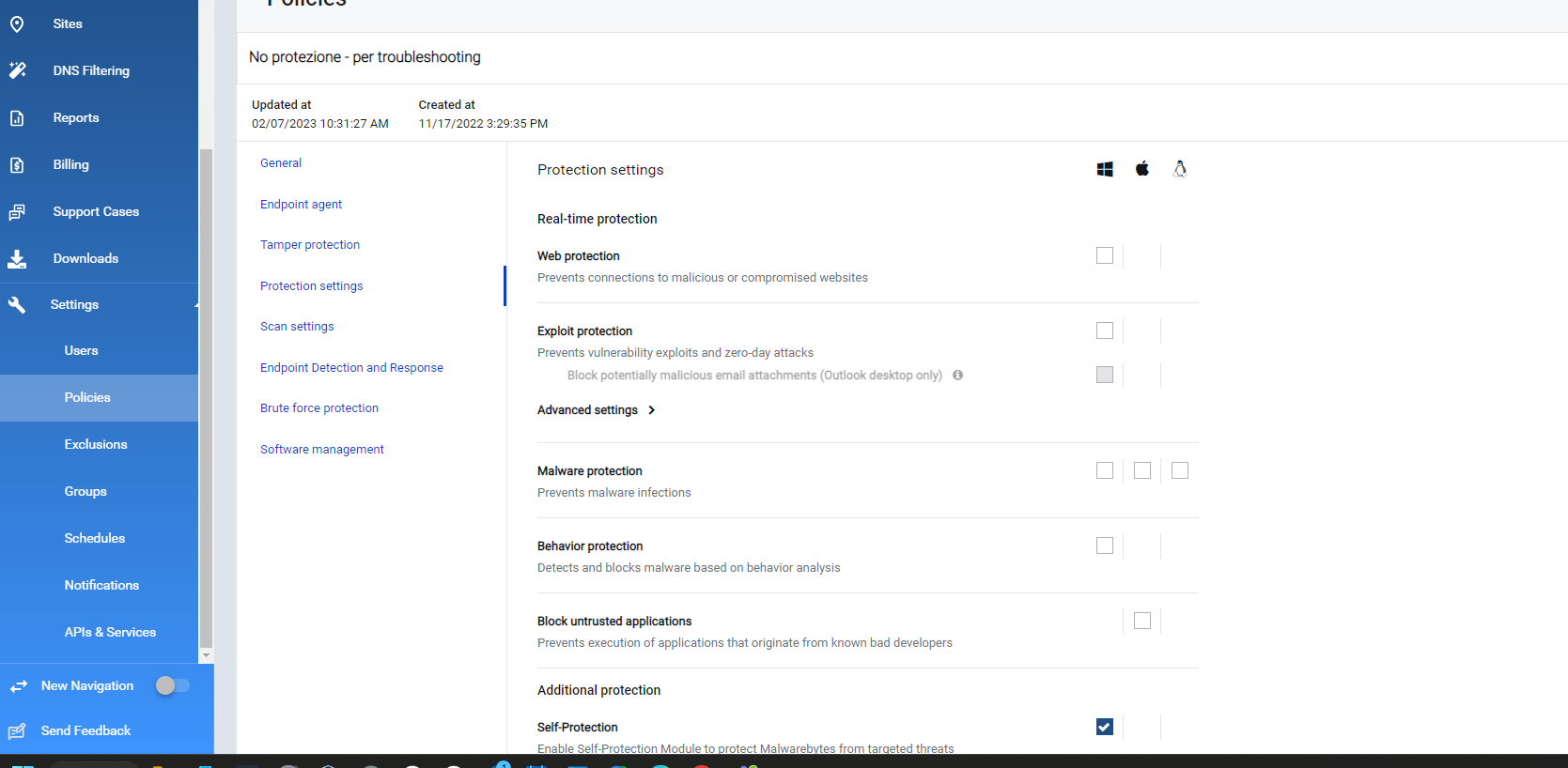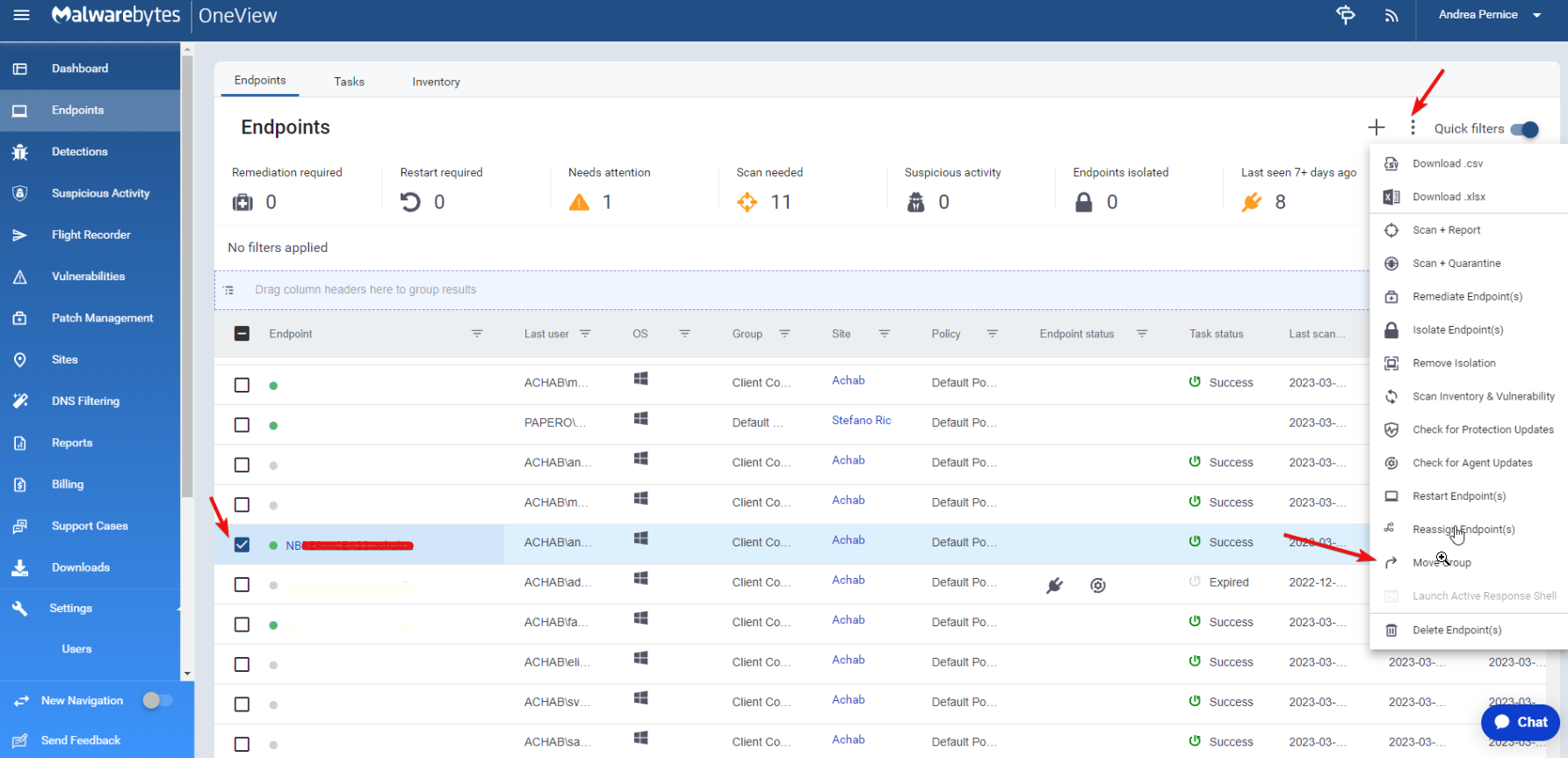 Dalla lista degli endpoint si seleziona il dispositivo e si sposta nel gruppo creato con la policies appena creata e così abbiamo disattivato le funzioni di sicurezza… mi raccomando ricordiamoci di fissarci un promemoria per riportare il dispositivo alla protezione completa.