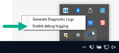 Selezionare Enable debug logging dal menu. Allo stesso modo è possibile disabilitare il logging di debug.