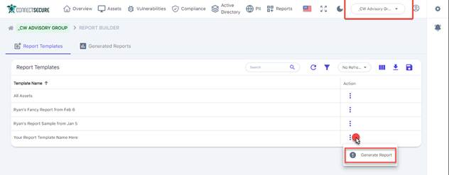 - Clic sul menù ⋮ del template > Generate Report.