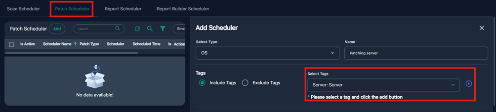 È possibile pianificare patching selezionando tag specifici, ad esempio: